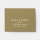 Custom A2 wedding response envelopes feature formal style ivory reply-to address text with scroll and antique gold (can be customised) printed background colour.