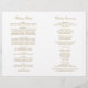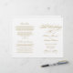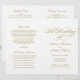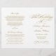 Grand antique gold calligraphy spells out "The Wedding Of" in sweeping ornate script across this elegant ceremony program. Decorative scroll flourishes in warm gold frame the design on a clean white background for a timeless, formal look. Inside pages are fully customisable for your bridal party, ceremony order, and a personal thank you message on the back cover. Programs are printed on text-weight paper and arrive flat, requiring a simple centre fold.