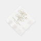 Wedding napkins feature "Mr. & Mrs." in an antique gold calligraphy script font with custom monogram design that can be personalised with the bride and groom's married name and wedding date. White and antique gold colour scheme.