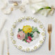 This elegant paper plate features an antique rose floral design with a fancy gold filigree border. Use this beautiful floral paper plate for your wedding party or for another special occasion.