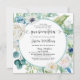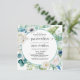 Elegant quinceañera invitation with gorgeous blue watercolor floral design in a variety of aqua, turquoise, teal, green mint, lime green and white, over a watercolor background in aqua, and turquoise hues. Modern handwritten calligraphy details. Back with full watercolor texture in aqua, turquoise, teal, and green mint hues. Ability to make text size, colour, style and position by selecting customise further. Invitation with area for your Mass ceremony and reception details, which if you like, can be changed to reception/dinner and dance. This same invitation is also available in Spanish.