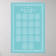 Elegant Aqua Blue Flourish Wedding Seating Poster