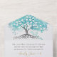 Elegant Aqua Blue Heart Leaf Tree Wedding All In One Invitation