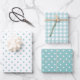Elegant Aqua Blue Polka Dots Gingham Pattern Mix Wrapping Paper Sheet