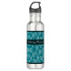 Elegant Aqua Leaves on Teal Pattern With Name 710 Ml Water Bottle