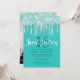 This modern invitation design features faux aqua blue mint dripping glitter metallic texture and elegant calligraphy font. Add your favourite photo.