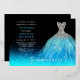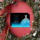 A festive yet elegant Quinceañera design featuring a beautiful aqua and silver-tone Spanish gown on an aqua to black fade faux glitter background with real silver foil accent text. Features lots of aqua faux glitter for a magical evening. Please note that silver in the dress is simulated (not foil).