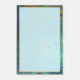 Luxurious post it notepad with blue and gold stained glass vine pattern beautifully framing your notes and transparent writing surface showing background.