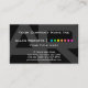 Elegant business cards in elegant black and grey with a row of vibrantly coloured polka dots. Customisable monogram in the background.