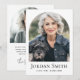 Bereavement sympathy thank you card featuring your photo inside an elegant arch frame with name and dates below. Additional photo and a custom message on the back.