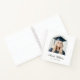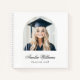 Graduation guest book featuring your photo inside an arch frame and and the name of the graduate in an elegant calligraphy script font. White or custom colour background.
