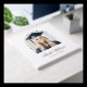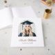 Graduation guestbook featuring your photo inside an arch frame and and the name of the graduate in an elegant calligraphy script font. Real foil text on white or custom colour background.