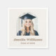 Graduation napkins featuring your photo inside an arch frame and and the name of the graduate in a bold, retro style font. You can change background, fonts and font colours, move and resize elements with the design tool.