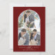 Elegant Arch Married and Merry 3 Photo Deep Red Holiday Card