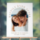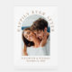Elegant white acrylic wedding welcome sign for your engagement party, rehearsal dinner, wedding ceremony and reception featuring your photo showcased in a chic arch frame, "Happily Ever After" in classic gold serif typography, and your names and wedding date in simple gold typography.