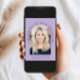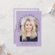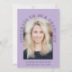 Elegant lavender graduation party invitation featuring the grad's photo in an arch frame and "Congrats To Our Graduate" in purple serif typography and their name, school and class year in simple modern purple typography. On the back, add an additional photo and personalise the party details.