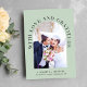 Modern light sage green wedding thank you card featuring your photo in an arched frame, "With Love And Gratitude" in elegant typography and your first names or married name, wedding date and location. On the reverse side, personalise your thank you message in simple typography, and add an additional photo and your names in a signature-like script.