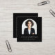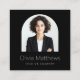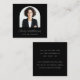 Black or custom colour business cards featuring your photo inside an arch frame and your name and title below. You can change background colour, fonts and font colours, move and resize elements with the design tool.
