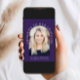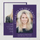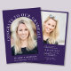 Elegant dark purple graduation party invitation featuring the grad's photo in an arch frame and "Congrats To Our Graduate" in white serif typography and their name, school and class year in simple modern white typography. On the back, add an additional photo and personalise the party details.