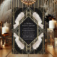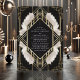 Set the tone for an unforgettable wedding with this Elegant Art Deco Black and Gold Feather Wedding Invitation. Featuring luxurious golden geometric patterns against a rich black background, adorned with delicate white feathers, this invitation exudes 1920s charm and sophistication. Perfect for a Gatsby-inspired celebration, it captures the essence of glamour and timeless elegance, inviting your guests to step into an era of style and romance.