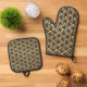 Elegant Art Deco Black Gold Oven Mitt & Pot Holder Set