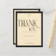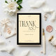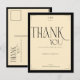 Express your gratitude with this elegant black typography thank you postcard. The classic serif font for 'THANK YOU' paired with a delicate script for 'for celebrating with us!' creates a sophisticated and timeless feel. Perfect for sending a heartfelt note after a wedding, anniversary, or any special occasion. The simple yet striking design features a creamy beige background with a clean black border, making your message stand out. Add your names and the date to make this postcard uniquely yours and convey your appreciation in style. This design is ideal for those who appreciate understated elegance and a touch of vintage charm in their correspondence.