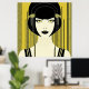 Elegant Vintage Art Deco 1920s Flapper. Black and yellow. Beautiful face with 1920s style bob, fringe, bangs. Available in other sizes. Choose your favoured size from the drop down.
