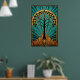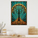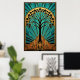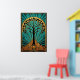 Elegant Art Deco Maple Tree Silhouette Gold Teal Poster