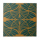 Elegant Art Deco Mustard & Teal Gouache Scallops Tile