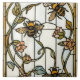 This Art Nouveau stained glass artwork showcases a delicate botanical scene with a golden bee drifting through ornate florals. Curving lines and glowing glass textures evoke harmony, beauty, and the quiet magic of nature.