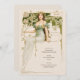 Enhance the elegance of your wedding with this stunning Art Nouveau-inspired drinks menu card. The front features a captivating illustration of a regal woman in a flowing green gown, adorned with delicate floral elements and a golden crown, set against a rich green and gold backdrop. This detailed artwork exudes sophistication and timeless beauty, making it a perfect addition to your wedding decor. The reverse side is adorned with a refined botanical emblem in gold and green, adding a touch of vintage charm. This menu card elegantly lists a curated selection of cocktails, beer, wine, and spirits, ensuring a delightful experience for your guests.