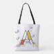 Elegant, funny artistic monogram. Here is the letter "A". Modernist style line and colour artistic decoration, the funny bird sits on the letter. The artistic field under the letter. The bird just sings a very popular song of four cool template words: La! La! La! La! You can change or delete all the words separately from each other. Just write some beautiful song of your own. Unique, one-of-a-kind tote bag for anyone. If you want to change the font, colour or position of the template text, just use the CUSTOMIZE button. You can transfer this design to another product of your choice, just use an option to the right of this description. Enjoy and be happy!