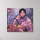 This design features a painting by the Japanese Impressionist artist Fujishima Takeji (1867–1943). It shows an elegant Asian lady wearing a traditional kimono that is mainly pink and purple with a black pattern. She is resting against a table on which a small perfume bottle is placed. There is also a vase of pink roses on the table. It is an image of restrained luxury and elegance.