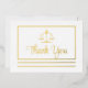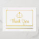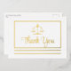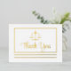 Simple, elegant and modern white graduation or professional attorney or other legal professional "Thank You" with real gold foil front law scales of justice and text with rectangular frame and double bottom lines and back black text postcard design with back template for return address. Original design by Holiday Hearts Designs (all rights reserved).