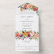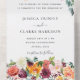 This pretty autumn wedding invitation features fall flowers and an easy all-in-one design. The watercolor floral includes peach, dusty red, purple, and rich yellow roses with lush green foliage. The wedding invitation and RSVP feature modern typography and an elegant layout. The RSVP includes three meal choices. Matching wedding stationery in our "Autumn Elegance" collection.