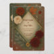 This elegant wedding design blends the rich tones of fall with the quiet stillness of early winter. A gold diamond frame sits gracefully at the centre of a softly textured background with a subtle shimmer, surrounded by a rustic floral arrangement of red dahlias, beige roses, burgundy leaves, pine accents, and delicate foliage. The warm hues and moody atmosphere evoke a sense of calm and romance, perfect for a late fall or early winter celebration. With its seasonal bouquet and vintage charm, this design offers a timeless aesthetic for couples seeking a refined yet nature-inspired wedding style.