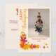Holiday greeting card featuring a Happy Thanksgiving festive phrase, colourful autumn leaves and one photo of your choice. Personalised this greeting card with your name and year.