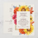 Set the stage for an elegant event with this autumn wedding invitation. A lush and luxurious floral wedding invitation featuring a frame of sunflowers, red mums, lantanas, black-eyed susans, autumn leaves, and blue berries against a cream background. On the back of the invites is a QR RSVP code and wedding details. It is perfect for a dramatic and unforgettable celebration. They are ideal for those who appreciate timeless allure. PLEASE NOTE: The gold featured in this design is NOT REAL foil.