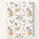 This design features a delicate fall-themed watercolor pattern. The design includes soft and muted tones of pumpkins in shades of white, blue, and light orange, accompanied by an assortment of autumn leaves in various shades of yellow, orange, and brown. Scattered among the pumpkins and leaves are gentle floral elements and sprigs of greenery, all arranged on a clean, white background. The overall aesthetic is light, airy, and evocative of the serene beauty of the fall season.
