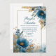 Elegant Azure Blooms & Gold Frame Wedding Invitation