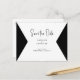 Black and White Envelope Style Square. Photo Wedding Save the Date. Back with Bride and Groom Photo last names as well as the text Website. Postcard