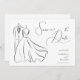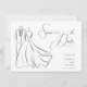 🌟For personalised assistance with my design or for special requests, feel free to reach out before ordering! I'm here to help.Mark the beginning of your journey together with our Elegant B&W Tuxedo & Dress Save the Date. This refined design, showcasing delicate line art of a wedding dress and tuxedo on hangers, sets the tone for the timeless elegance of your upcoming celebration. Fully customisable, this card is more than just an announcement; it's a prelude to the curated experience awaiting your guests. Coordinate it seamlessly with our full suite for a cohesive and unforgettable celebration. Your love story, your way.