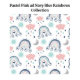 A dreamy mix of pastel pink and deep navy blue, with soft rainbow arcs