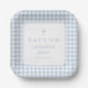 Elegant Baby Blue Gingham Boy Baptism Paper Plate