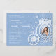 Looking for unique, elegant, Cinderella themed invitations that you can personalise for your baby blue quinceanera, sweet 16 birthday party, or once upon a time wedding? This beautiful DIY template created with original artwork by Raphaela Wilson features soft watercolor roses, a fancy pumpkin shaped horse carriage topped with a royal crown / tiara, and butterfly confetti with accents in real silver foiling. It's simple to add your own glamourous Mis Quince Anos photo / XV picture on the front (vertical portrait orientation works best), as well as change the background to any colour. Not to mention, you can select gold foil, or even rose gold, should you prefer a different metallic shine. These real silver foil quinceanera invitations can easily be translated from English to Spanish with the classic Mexican card wording layout. If you need to add additional rsvp info, event program details, or wish to include a more pictures, the back of the card has plenty of room. Need to create your own fairy tale bridal shower or baby shower invitations instead? This easy, elegant template is flexible for many special occasions - enjoy! Category: cool baby blue quinceañera invites with butterflies; Cinderella princess weddings; and cute magical princess birthday invitations. Winter wonderland birthday party theme colours: light blue, dusty blue pastel, pale blue, light grey, metallic silver and white.