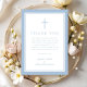Elegant Baby Blue Religious Cross Baptism Thank You Card