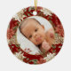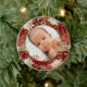 Commemorate your baby’s first Christmas with this elegant double-sided ornament. The front features a timeless red background adorned with festive poinsettias, pinecones, and greenery, framing a customisable photo of your little one. The back continues the charm with space to add your baby’s name, birth date, time, weight, and length in a graceful font, making it a true keepsake. Crafted from durable ceramic with a glossy finish, this ornament is perfect for capturing all the precious details of this milestone moment. Make this home decor your own and bring joy to your tree for years to come!