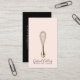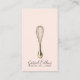 This elegant, modern, artisan baker's business card features a gold whisk and a delicate cream watercolor background paired with your company name and baker's name in gold script calligraphy. All text in gold. The back continues this harmonious design with gold typography and coordinating pink social media icons. The subtle blend of pink, gold, and gray creates a sense of warmth and balance—like a meditation in baking.