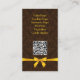 © 2022 Socialite Designs Inc.  Elegant bakery business card has a chocolate brown damask background, a beautiful text banner with gold and brown, three cake pops and a gold satin ribbon and bow design.  The back has an area for your dessert list as well as a QR Code.