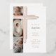 Celebrate a meaningful milestone with our Elegant Minimal Baptism Foil photo Invitation, designed by Moodthology Papery. Featuring our original hand-drawn sketch cross in gold foil placed in the top left corner, behind the cross are three photos for you to replace with your own photos. This invitation showcases a clean, modern layout with all event details elegantly displayed in the white space along the right-hand side. The reverse side features our coordinating hand-drawn cross illustration, creating a cohesive and refined religious stationery piece. Perfect for baptisms, christenings, dedications, and other faith-filled celebrations, this invitation blends contemporary minimalism with timeless Christian symbolism. Design and illustration by ©Moodthology Papery.